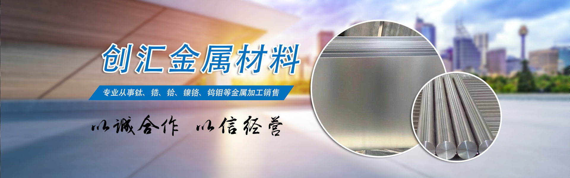 寶雞市創匯金屬材料有限公司,位于有“中國鈦谷”之稱寶雞寶鈦路南段,這里也是國家重點支持和扶持的有色金屬材料資源產業基地,我司專業從事鈦、鋯、鉿、鎳鉻、鎢鉬、鉭鈮、合金材料、復合材料,板、棒、絲、管、箔材等,設備制造,金屬制品機械加工銷售。
